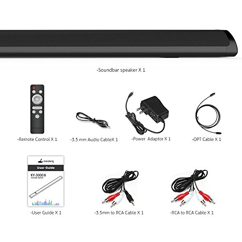 -. Title : Sound Bar, Meidong Wired & Wireless Bluetooth Sound Bar, 36-Inch 2.0 Channel Home Theater Surround Speaker for TV With Optical Cable/RCA/AUX/Remote Control (2018 Upgraded)
