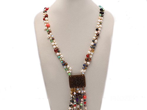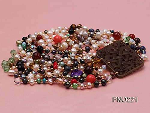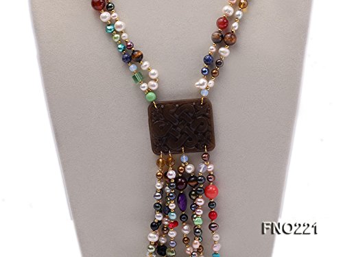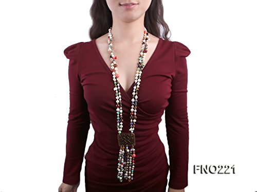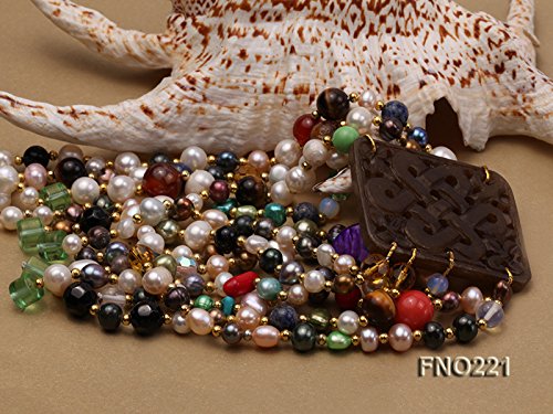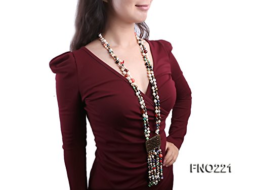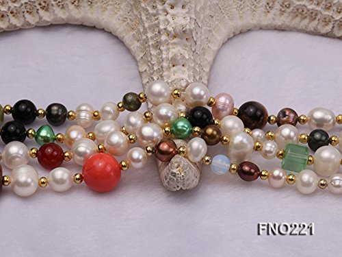 Description *This is a freshwater cultured pearl necklace made with 7-8mm multi color pearls and it is also dotted with some golden-tone beads.