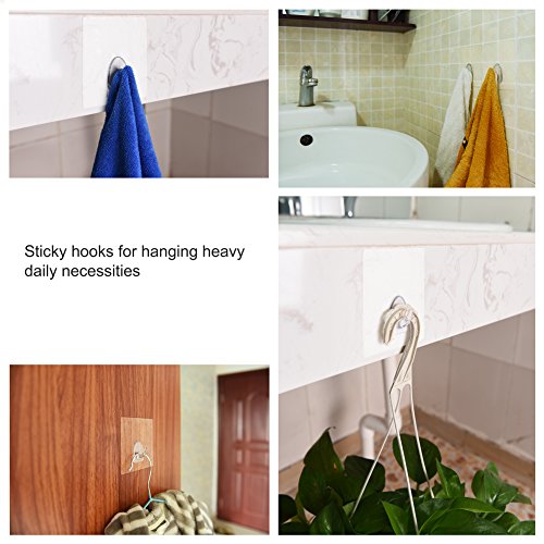 Uarter Adhesive Hooks Seamless Transparent Sticky Hooks 11lb/5Kg (Max) 6 Pcs/Lot - Super Heavy Load-bearing for Bathroom Kitchen Wall and Ceiling