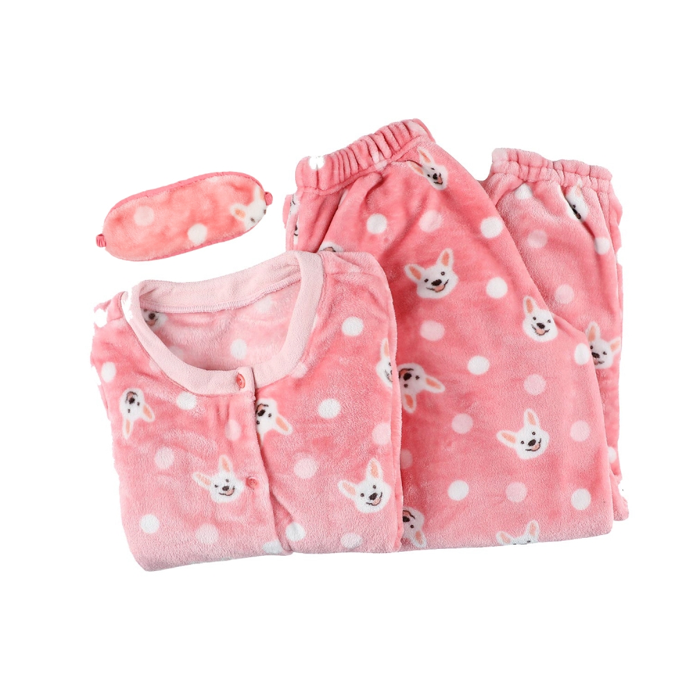 투톤 도트가 귀여운 여성 수면 파자마입니다. 네크와 소매단에 핑크 솔리드 단이 있어 깔끔함을 더해주며라운드 넥으로 취침시 편안하며 하의에 주머니가 있어 편리하게 입을 수 있습니다.소매와 바지단에 밴드가 있으며 안대가 SET로 구성되어있습니다