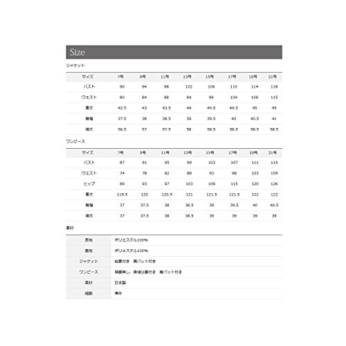 -. Feature : 表地 : ポリエステル100% 裏地 : ポリエステル100% / ジャケット:総裏付き 肩パット付き ワンピース:袖裏無し、身頃は裏付き 肩パット付き / モデル身長:165cm / スタイルがよく見えるロング丈アンサンブルです。