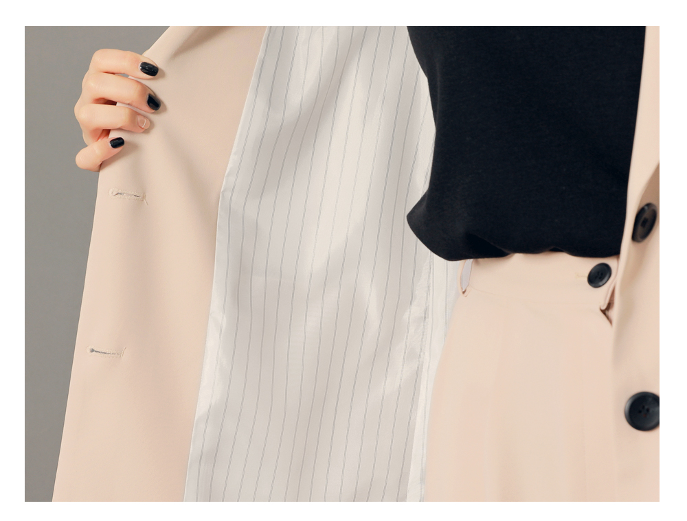 백라인의 뒷트임 포인트가 더욱 클래식한 무드를 연출해드리고 활동성이 좋아 데일리로 입기에도 좋은 수트 자켓 입니다.
