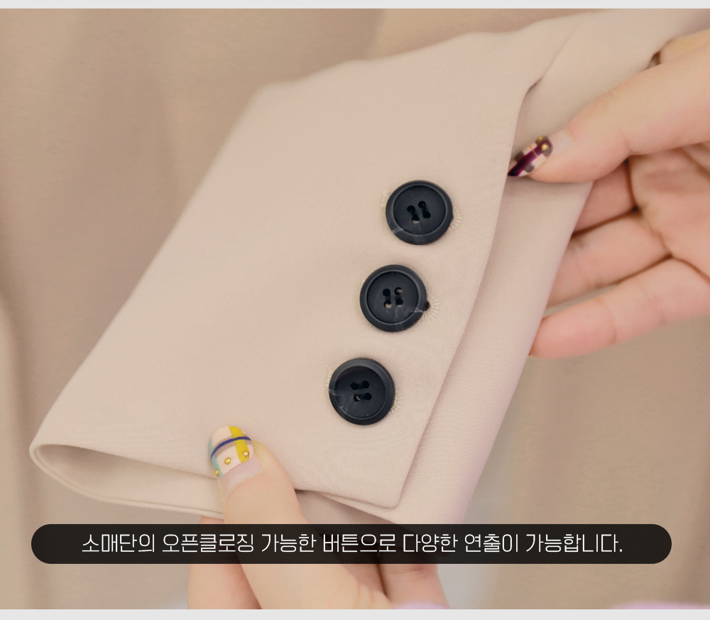 소매단의 오픈클로징 가능한 버튼으로 다양한 스타일링이 가능합니다.