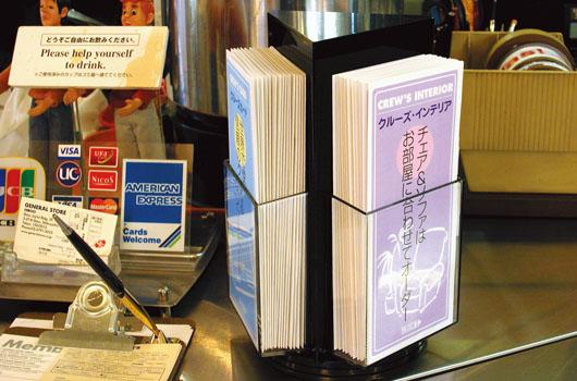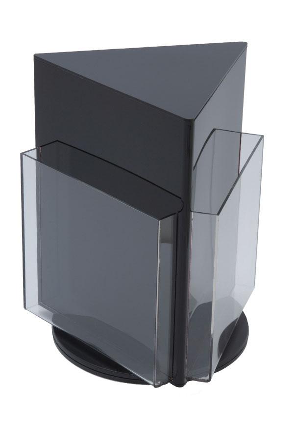 | レジカウンターや商品棚など十分な奥行きがない場所に最適です。3つのパンフレットをすっきり収め、それぞれが重なり合うことがないので、カタログやチラシの表紙の全面を見せることができます。 |