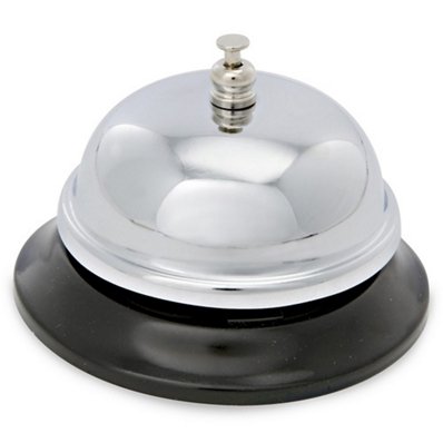-. Feature : Premium quality: Made of metal, very durable to use. / Great sound: The bell's ringing is very lound & clear. Easy to hear. / Slip resistant: Its slip resistant base won't damage your table. Very safe to use. / Easy to clean: Just make sure to use a light cloth to clean it up when the stainless steel on the bell does show hands and finger marks when touched.