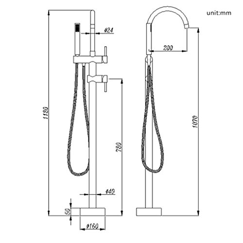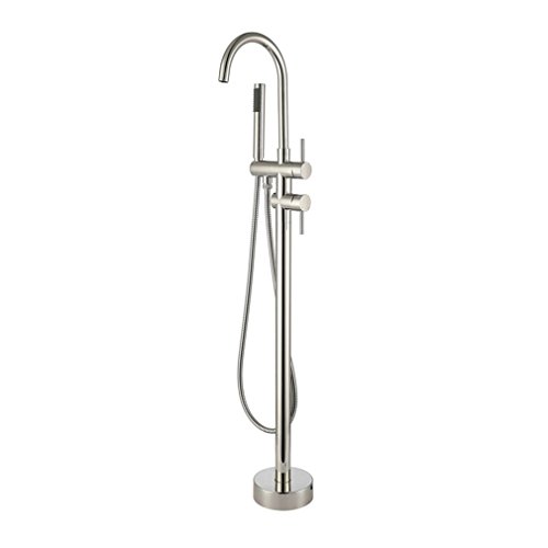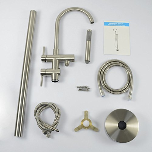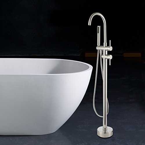 PHASAT Contemporary Two Handles Brass Tub Filler with Hand Shower Floor Standing Bathtub Faucet, Brushed Nickel BT9103N