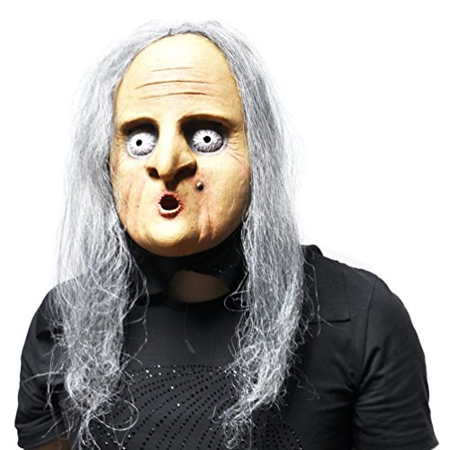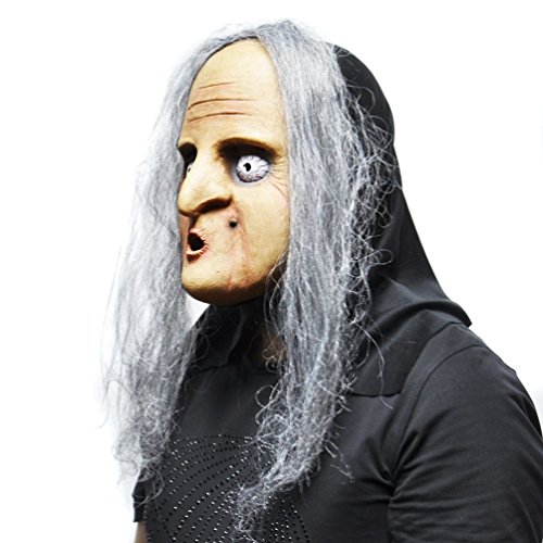 -. Title : KINGMAS Halloween Terror Silver Haired Old Witch Mask Costume Cosplay Latex Mask Prop
