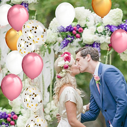 -. Title : Party Balloons Decorations,100Pcs 12 Inches Ultra Thickness Gold & Pink & White Balloons,Tissue Paper Flowers,Circle Dots Garland for Birthday Wedding Party Supplies