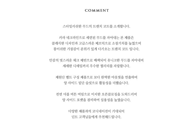 J-5040 모더닝 클래식 트렌치 코트(벨트set) Beige
