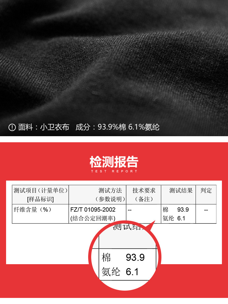 | 面 料:93.9%棉6.1%氨纶颜 色:黑色 |