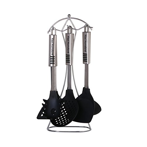 -. Title : Yizai Homeland Stainless Steel & Silicone Kitchen Utensils, 7 Piece Cooking Utensil Set with Slotted spoon,Slotted turner,Soup ladle,Solid spoon,spaghetti server,Skimmer and kitchen tools hoder.