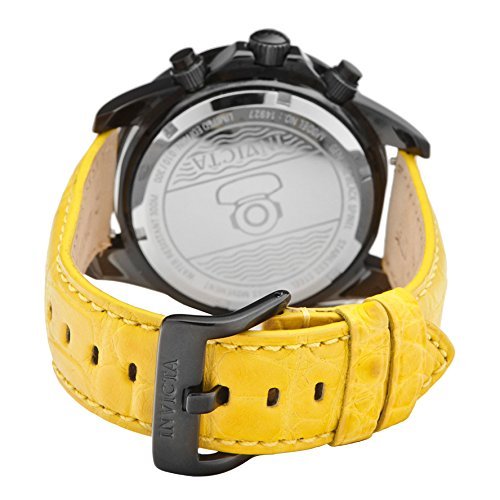 -. Title : Invicta Grand Diver Chronograph Black Dial Yellow Leather Mens Watch 14927