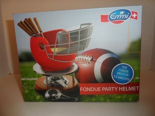 -. Title : Emmi Fondue Party Helmet (Football Helmet Fondue) With Bread Basket, Base/Burner, and 6 Fondue Forks For Cheese or Chocolate