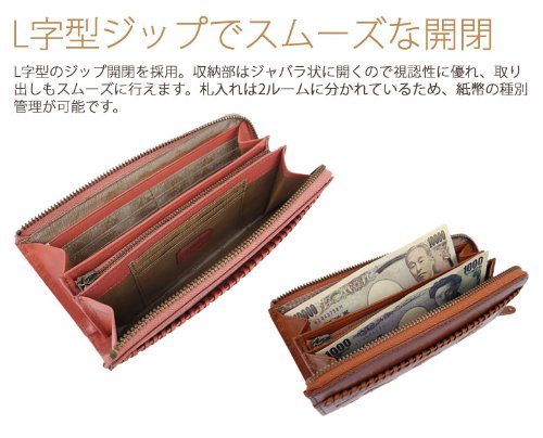 -. Feature : 外寸:縦10cm×横20cm×まち2.5cm ・重さ:190g / お札入れ:2ヶ所 ・小銭入れ:1ヶ所(L字ファスナー式) ・カード入れ:18ヶ所 / 内ポケット:2ヶ所 ・外ポケット:2ヶ所 / 表素材:イタリア製牛革  ・本革 ◇手ざわり: 柔 □□■□□ 硬 (※表記は目安です) / 裏地:有り