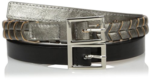 (Steve Madden)/Accessories/Belts Buckles/DIRECT FROM USA/Steve Madden Women's Two For One Belt with Lacing Detail, Black/Pewter, X-Large
