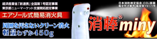 Clean fire extinguishing without contaminating the surroundings Carbon dioxide digestion tool "Disinfect miny" is environmentally friendly fire extinguisher with no dirt and smell due to digestive agent after injection