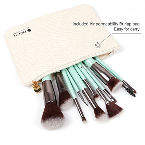 -. Feature : Top Brand brush's quality with factory direct selling P.R.Ice,this set includes all brushes you'll need to create perfectly polished makeup styles / Most wanted in Summer;All handmade mint green wooden handle with DUcare Bronzing logo apply a low-profile luxury experience,great for party,date,travel life / Environmentalists most wished;Eco-Friendly Burlap bag with inner zipper,leaves a room for extra cosmetics like mascara,lipstick, mirror,sponge,wipes or makeup remover / Feature:Duo Synthetic fiber,silky soft and elastic,black bristles with white edging,chic looking and see if that amount of makeup is sufficient for your needs / Quality Assurance:80 steps in total during the whole production process for each brush,very strictly quality control,100% money Back Guarantee,not like other brands