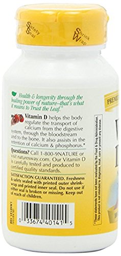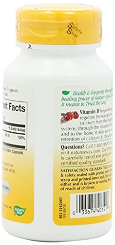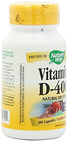 -. Binding : Health and Beauty -. Brand : Nature's Way -. EAN : 0033674401415 -. Feature : 0912980 -. Label : Natures Way -. LegalDisclaimer : Actual product packaging and materials may contain more and different information than what is shown on our website. We recommend that you do not rely solely on the information presented and that you always read labels, warnings, and directions before using or consuming a product. Please see our full disclaimer below. -. Manufacturer : Natures Way -. MPN : 58G -. PackageQuantity : 1 -. PartNumber : 58G -. ProductGroup : Health and Beauty -. ProductTypeName : HEALTH_PERSONAL_CARE -. Publisher : Natures Way -. Size : 100 CAP -. Studio : Natures Way -. Title : Nature'S Way Dry Vitamin D 400 Iu 100 Cap -. UPC : 033674401415