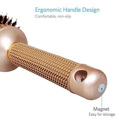 - Ergonomic handle design, comfortable and non slip: No more slippery handles, no more hand fatigue. Our round barrel thermal hair brush is equipped with an ergonomic and humanized palm shape handle. Its anti-slip rubber design ensures easy and hassle free use!