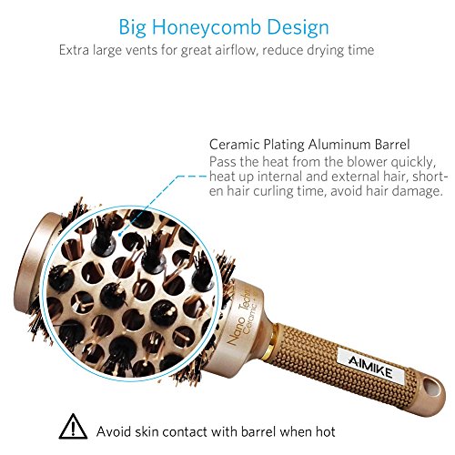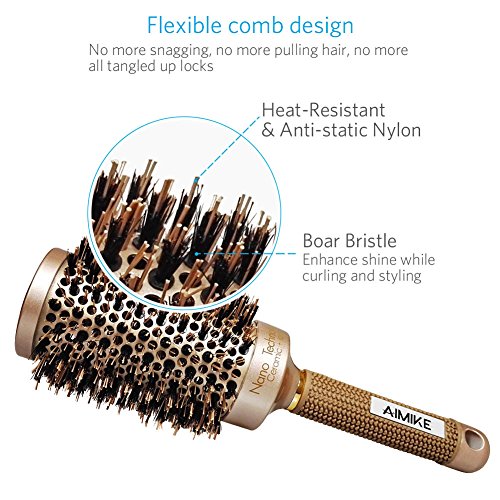 - Nano thermal ceramic ionic technology: Our round brush will add endless shine and blaze on your hair every time you use. Enhance the looks of your hair, improve texture and reduce brittle hair and split ends! It helps reduce frizz and add shine. Cuticles are sealed, producing a smooth, soft texture from roots to ends. It creates loose curls and waves in medium to long hair and helps straighten and add volume to shorter and medium styles.