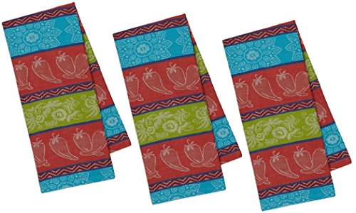 - Set of three bright and colorful jacquard kitchen towels