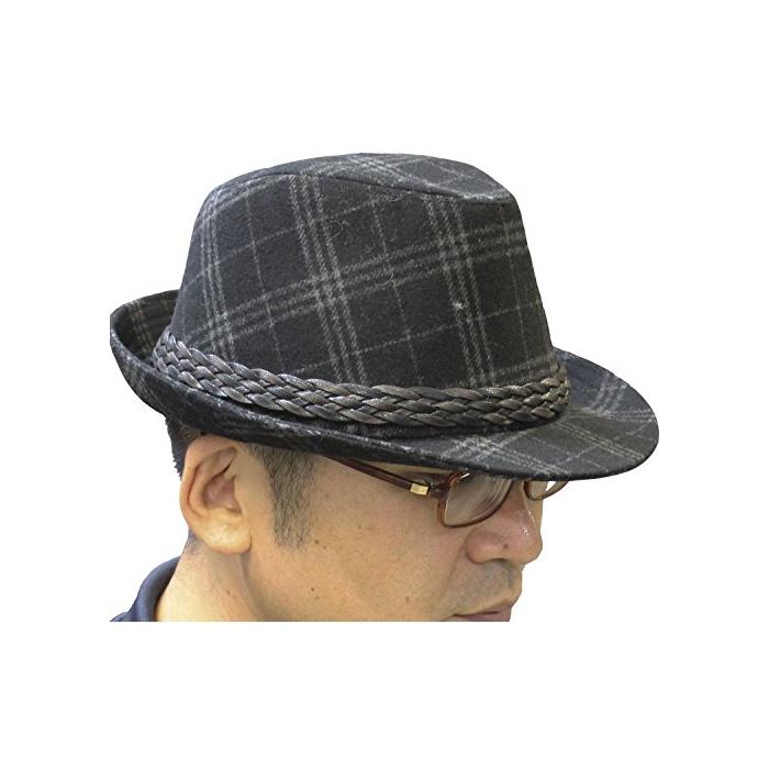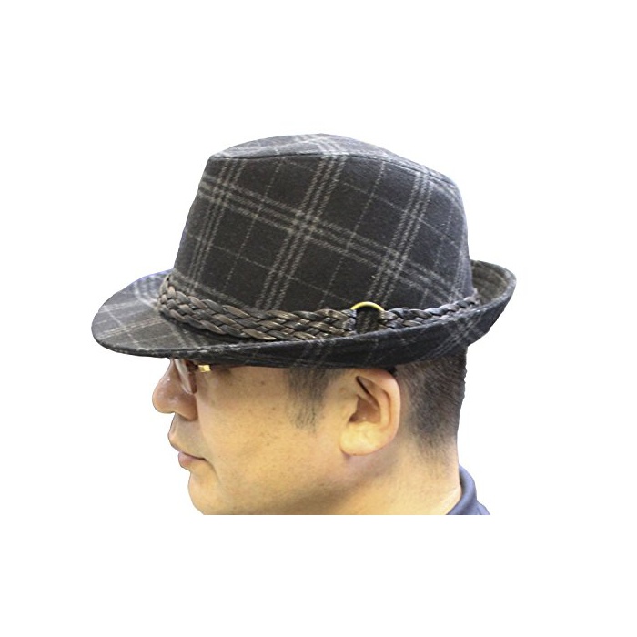 원본상품명: (大きい帽子 65cm)グレンチェックメッシュ編みテプリボン中折れハット ブラック