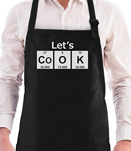 Let's Cook - Periodic Table Cooking Chef Apron - Geeky Funny BBQ Unisex Apron One Size Black
