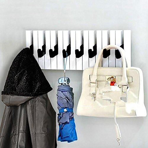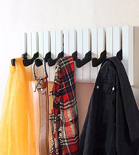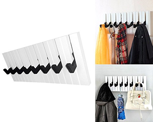 Decor Hut Piano 8 Hook Rack, Great for coats, jackets, towel, briefcase, pocketbooks, shopping bags and keys. Organize your home with this musical keyboard coat rack!