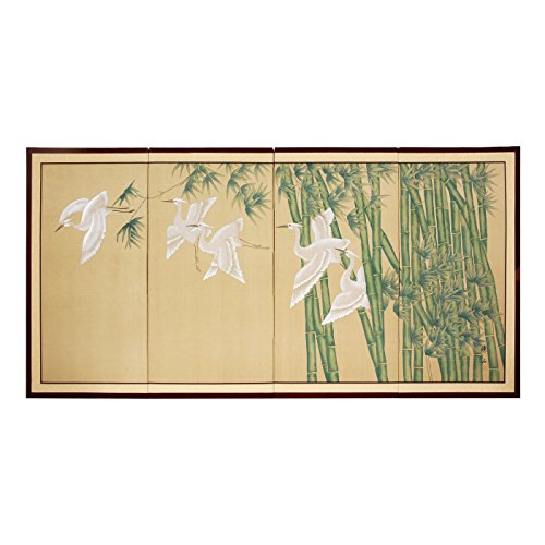 This Bamboo Escape motif is a particularly lovely rendering, with white cranes taking flight from a bamboo grove. Subtle, beautiful hand painted wall art. Note that no two renderings are exactly the same.