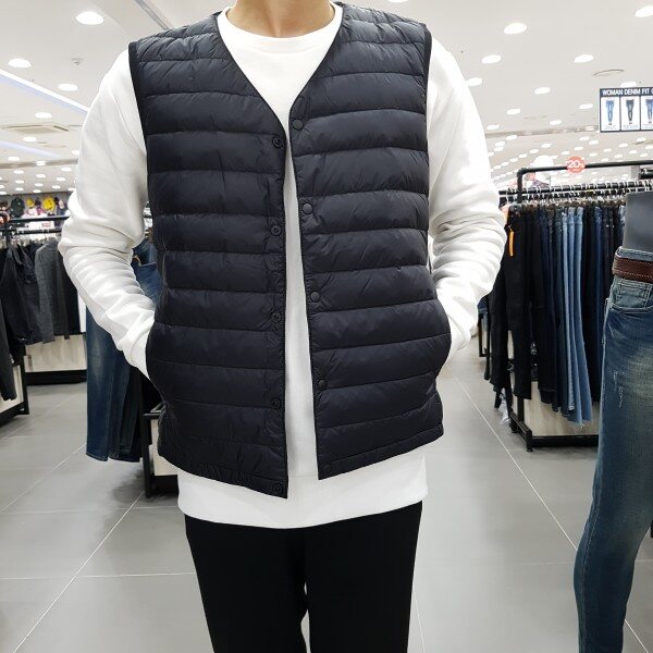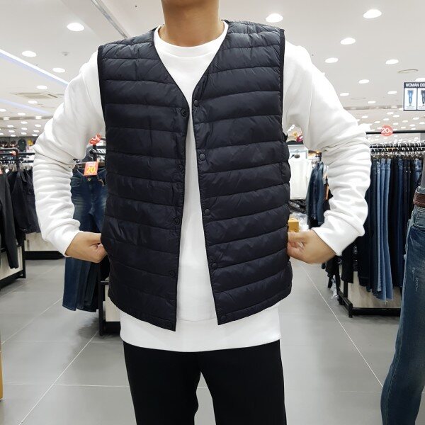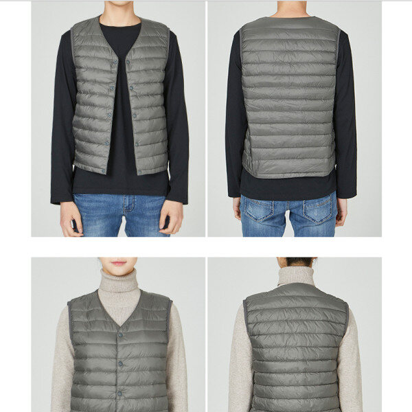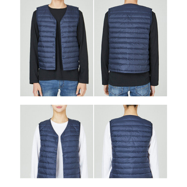 스냅 버튼 여밈으로 착용이 간편한 초경량 브이넥 구스 베스트입니다.