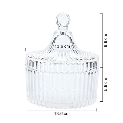 An elegant and stylish home decoration toyour house, storing your treats and precious trinkets, and serving your guests of nuts, candies, chocolate and more. Also available to use as shops, studios and office decoration to catch customers?? eyes! Features: Material: glass Weight: 750g/ 1.65 lbs Diameter: 5.3" Height: 2.2" 0 |