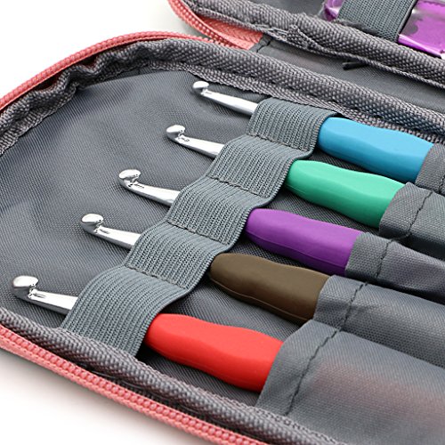 - This crochet set not only look attractive but is also portable. The rubber grip handles make a huge difference!!! In addition to being sturdy they are also easy on your hands and comfortable. The canvas case looks great and is easy to clean if needed.