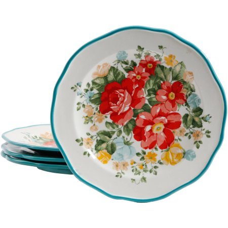 Product Description With its floral center and teal outline, The Pioneer Woman 8.5" Salad Plate (Four-Pack) brings a fresh, elegant look to any tablescape. Made of durable stoneware, this will surely become a household staple for many years to come. Be sure to take a peak at the complementary dinner plates, bowls and mugs for an even bolder statement! 0