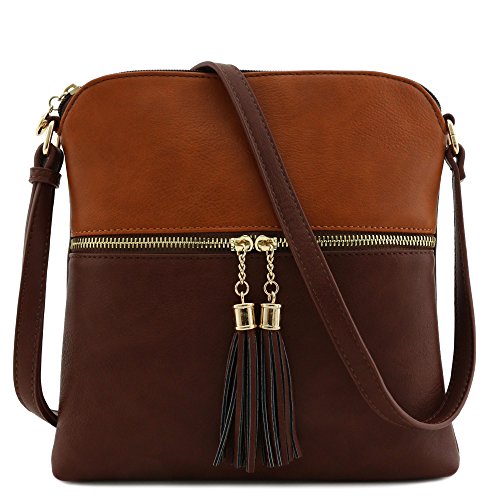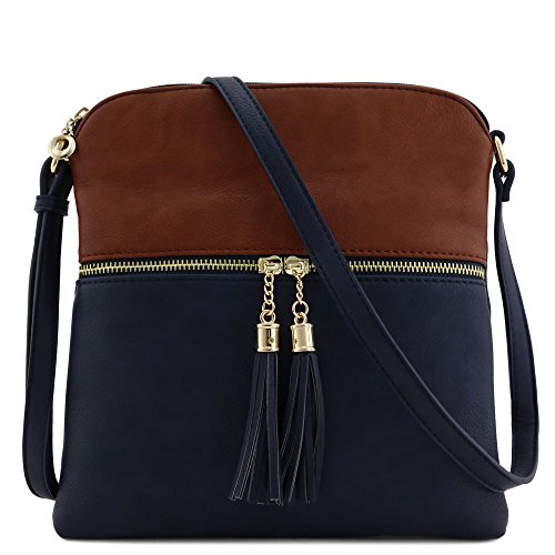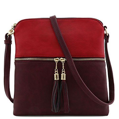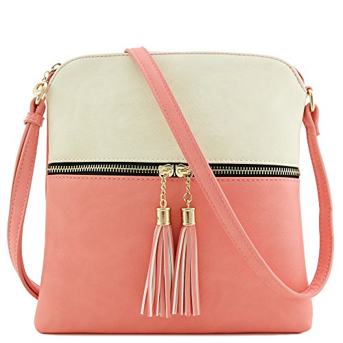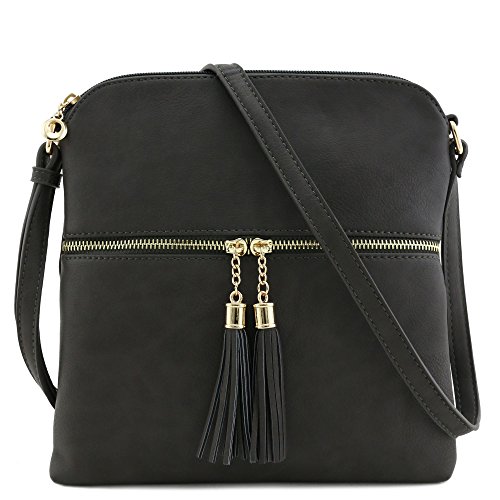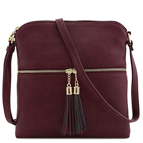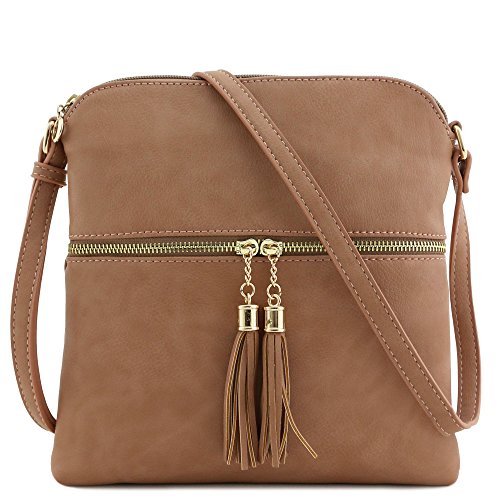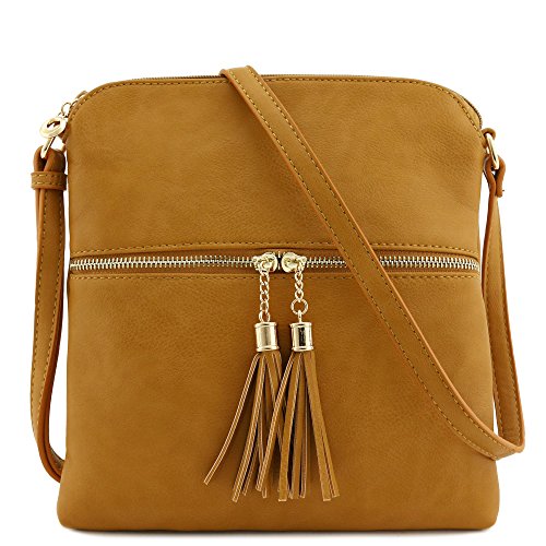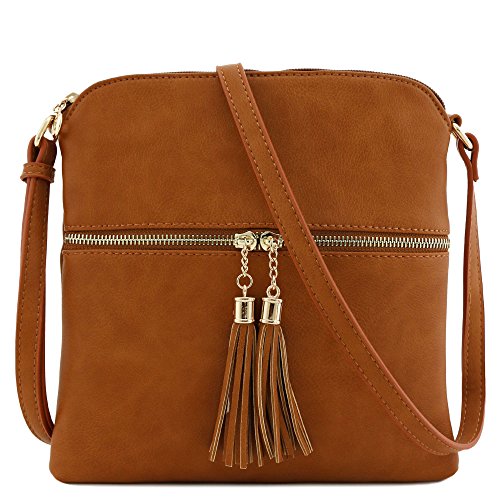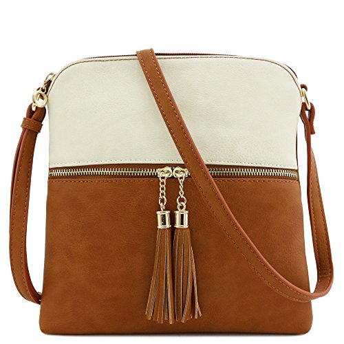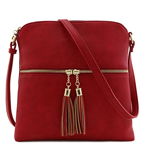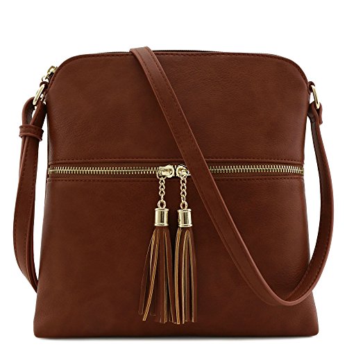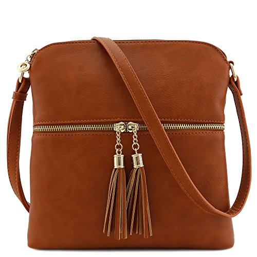 This tassel accent medium/large size crossbody bag makes easy to organize your everyday items.