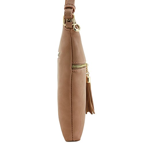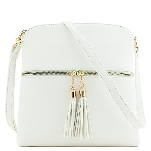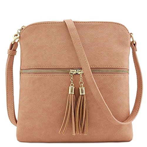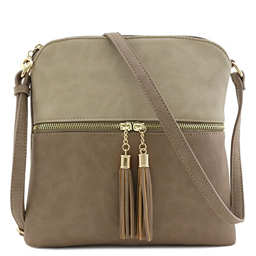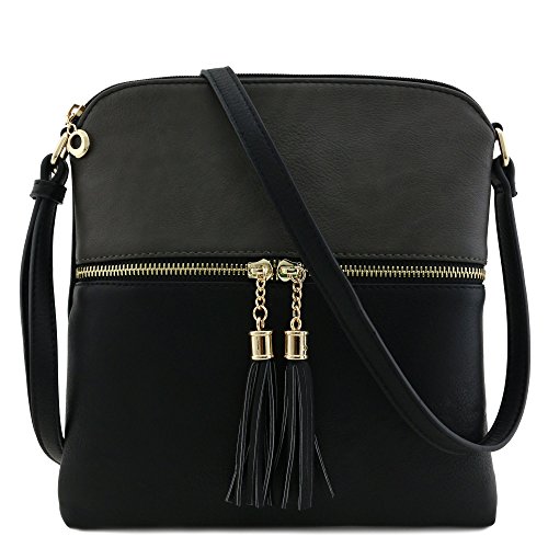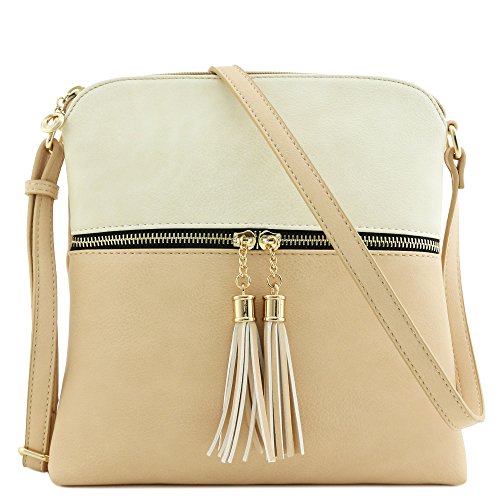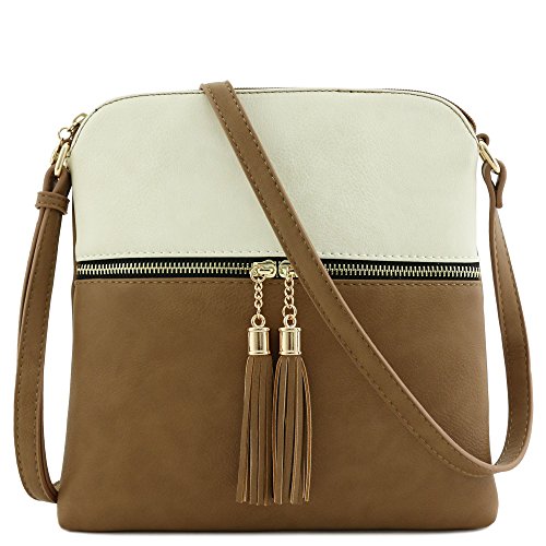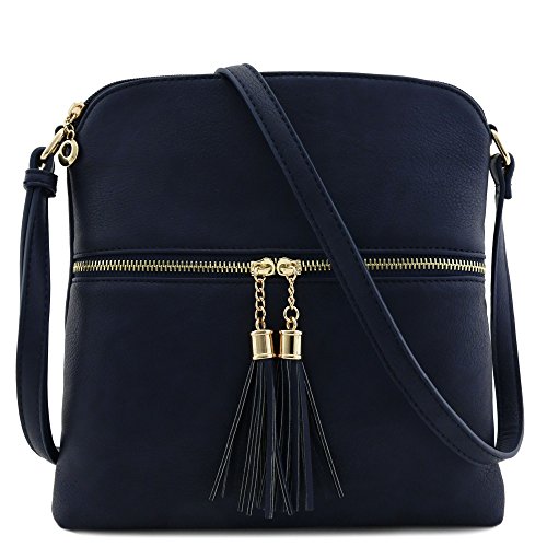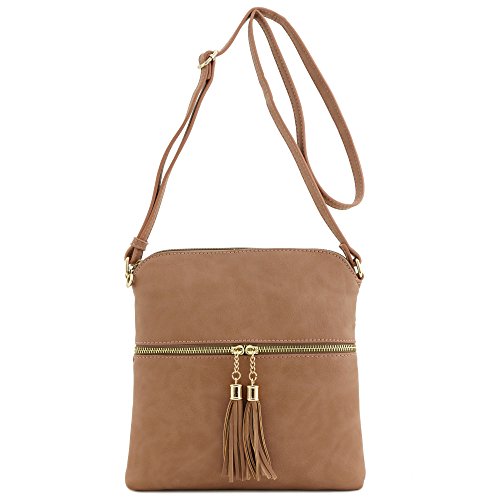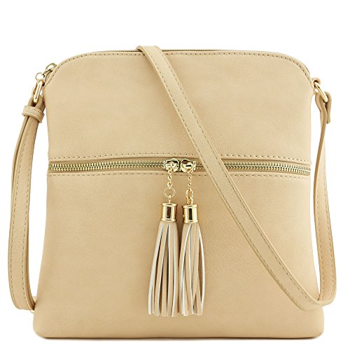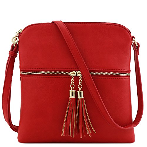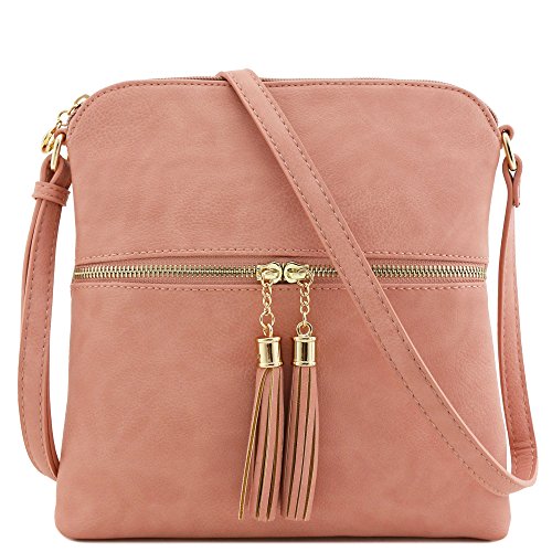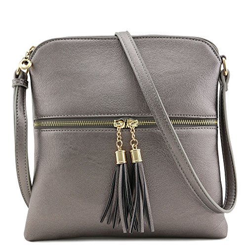 This tassel accent medium/large size crossbody bag makes easy to organize your everyday items.