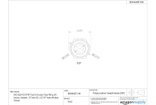 SMC KQ2H13-37AS Brass Push-to-Connect Tube Fitting with Sealant, Adapter, 1/2" Tube OD x 1/2" NPT Male