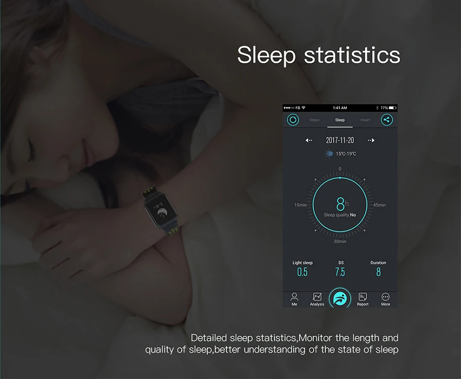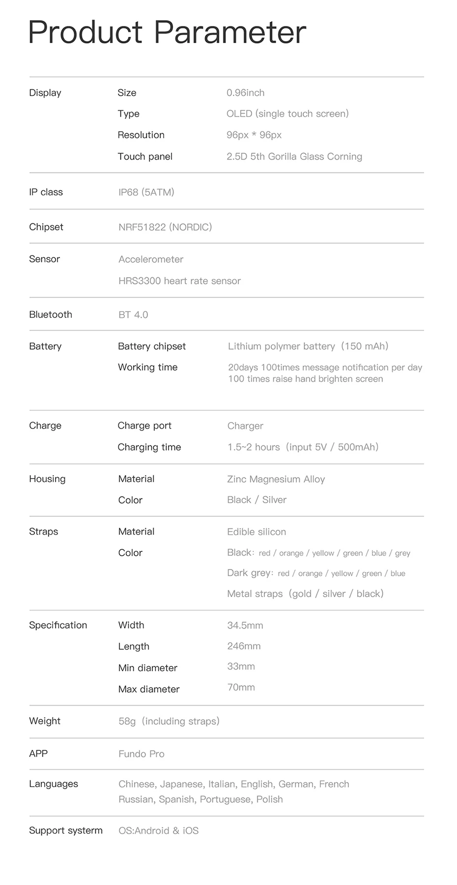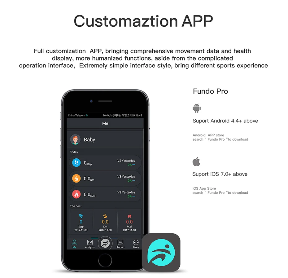 Function:Message Reminder,Passometer,Mood Tracker,Fitness Tracker,Call Reminder,Sleep Tracker,Heart Rate Tracker,Push Message