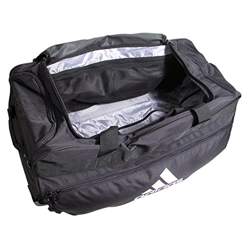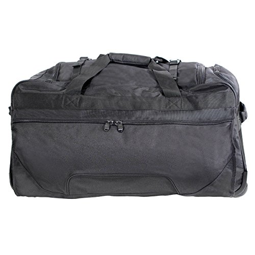 -. Feature : Duffel-style wheel bag with padded dual carry-on handles featuring main zippered compartment and compression straps at top for added durability