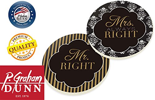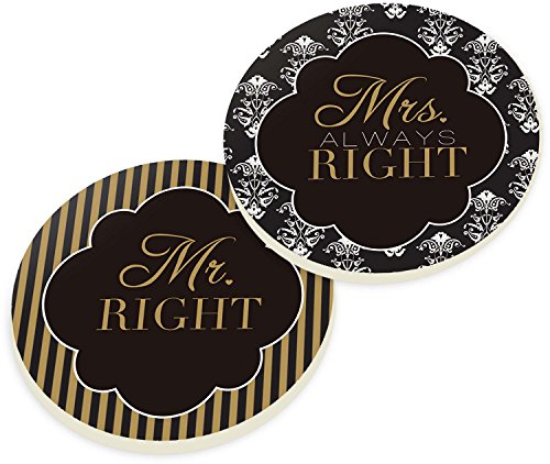 Mr Right Mrs Always Right Damask Striped 2 Piece Ceramic Car Coasters Set