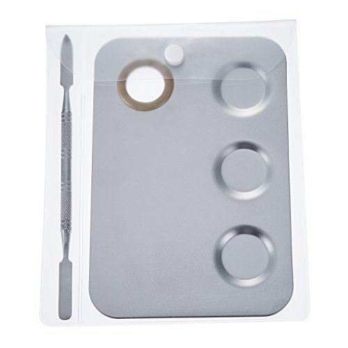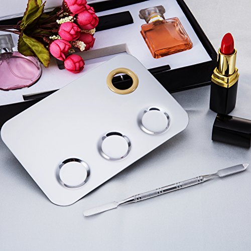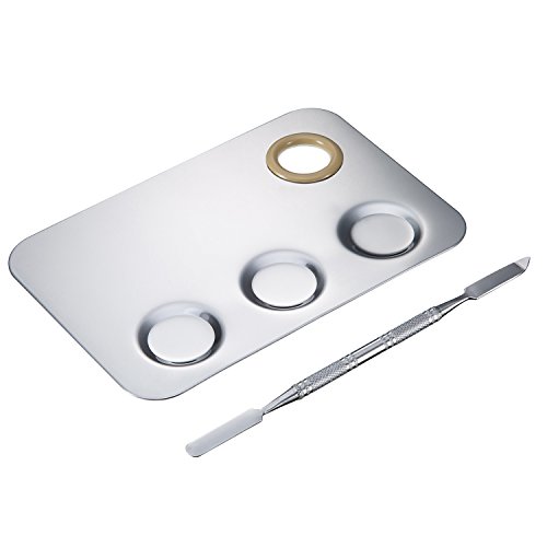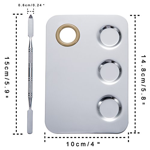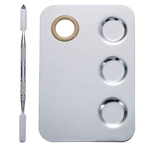 Mudder 5.8 by 4 Inches Makeup Palette Stainless Steel 3-Well Nail-art Palette Cosmetic Artist Mixing Palette with 5.9 Inches Spatula Tool