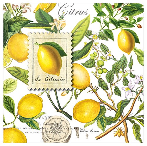 Michel Design Works 20-Count 3-Ply Paper Cocktail Napkins, Lemon Basil