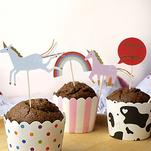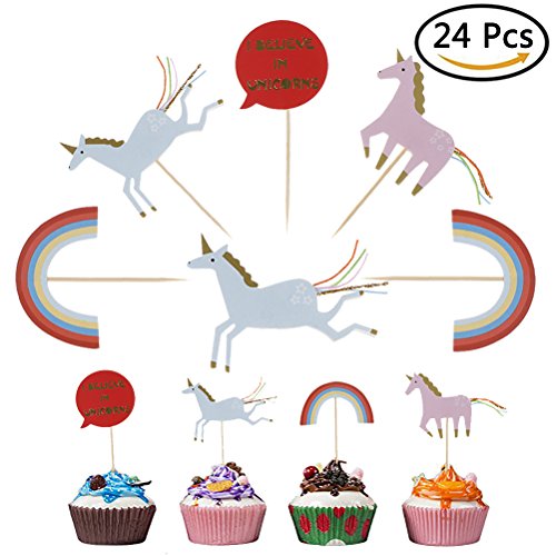 JUNKE 24 PCS Unicorn Cupcake Toppers Cake Decoration Unicorn Gifts Topper for Wedding Baby Shower Birthday Party Decor