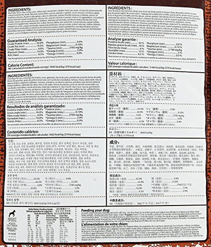 素材構成:粗タンパク質32.0%以上、粗脂質16.0%以上、粗繊維質4.0%以下、水分10.0%以下、粗灰分8.5%以下、リン0.8%以上、マグネシウム0.10%以下、タウリン2790mg/kg以上、オメガ6 3.0% 以上、オメガ3 0.9% 以上