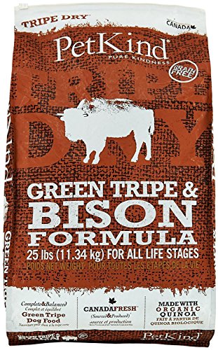 原材料:ビーフトライプ、バイソントライプ、七面鳥、エンドウ豆、七面鳥ミール、エンドウ豆タンパク、チキンミール、エンドウ豆澱粉、鶏脂肪(混合トコフェロールによる保存処理)、レンズ豆、亜麻仁、ナチュラルフレーバー、キノア、カボチャ、ホウレンソウ、ニンジン、ブロッコリー、クランベリー、りんご、ブルーベリー、バナナ、リン酸二カルシウム、炭酸カルシウム、塩化ナトリウム、塩化カリウム、サーモンオイル(混合トコフェロールによる保存処理)、チコリ根、ビタミン(ビタミンA、ビタミン D3、ビタミンE、ナイアシン、パントテン酸カルシウム、リボフラビン、硝酸チアミン、塩化ピリドキシン、葉酸、ビタミン B12) 、ミネラル(硫酸亜鉛、硫酸鉄、亜鉛タンパク化合物、鉄タンパク化合物、硫酸銅、酸化マンガン、銅タンパク化合物、マンガンタンパク化合物、ヨウ素酸カルシウム、亜セレン酸ナトリウム)、タウリン、乾燥ラクトバチルス・アシドフィラス発酵物、乾燥ラクトバチルス・カゼイ発酵物、乾燥ビフィズス菌ビフィダム・サーモフィラム発酵物、乾燥ストレプトコッカス・フェシウム発酵物、ユッカシジケラ、ローズマリー、トウガラシ、ペパーミント、タイム、緑茶抽出物