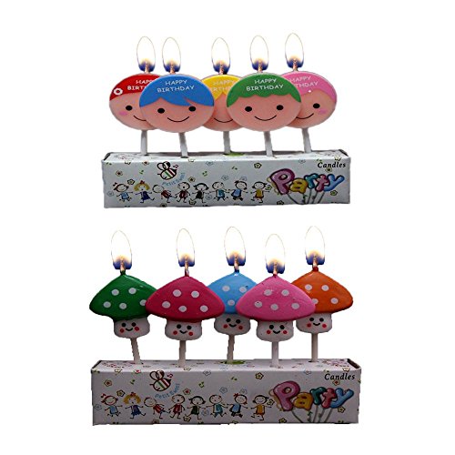 Creative Handmade Cartoon Candles Smokeless Lovely Candles Cake Decoration 2 Different Pattern 10 Pcs of Candles -5Pcs Baby Smile Face and 5Pcs Mushroom