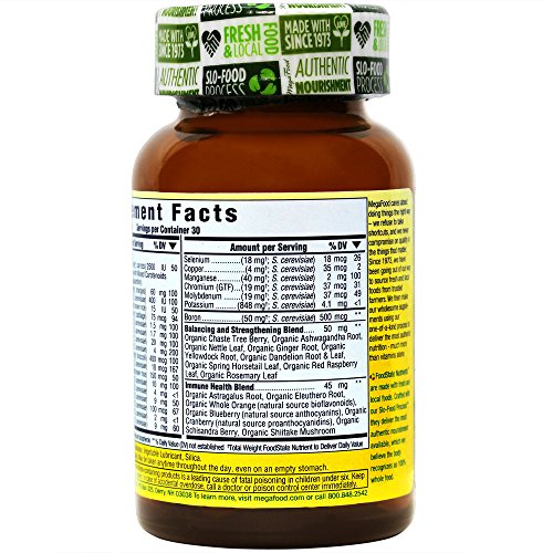 -. Binding : Health and Beauty -. Brand : MegaFood -. Color : Parent -. Feature : Easy to digest & can be taken on an empty stomach without upset / Wholesome nourishment in a convenient one tablet daily formula / Supports healthy emotional balance & stress response / Protective array of carotenoids and age-defying antioxidants from colorful whole foods / Non-GMO Verified -. IsAdultProduct : 0 -. Label : MEGAFOOD -. Manufacturer : MEGAFOOD -. PackageQuantity : 1 -. ProductGroup : Health and Beauty -. ProductTypeName : HEALTH_PERSONAL_CARE -. Publisher : MEGAFOOD -. Studio : MEGAFOOD -. Title : Mega Food - Women's One Daily