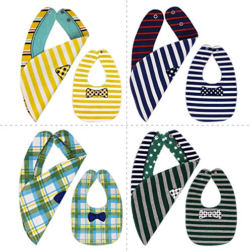 - REVERSIBLE & WATERPROOF - 8 different styles with a 4 layered design of our baby bibs helps in moisture management. The front and back layer is made up of 100% cotton which has high absorption to restrict any fluid from crossing the bib's boundaries. The internal layer comes with a polyester fleece which resists moisture and prevents it from passing through to your baby's clothes.