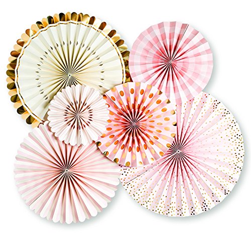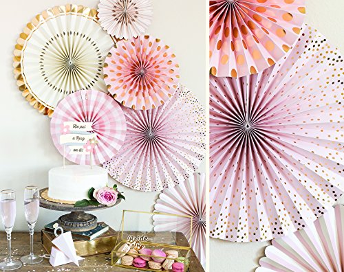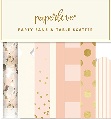 My Mind's Eye Paperlove, Pink, White, Gold Double-Sided Party Fans and Confetti, Set of 6 Fans + 1 Tube of Confetti