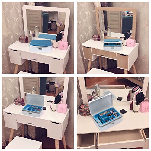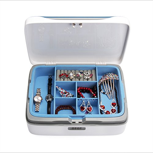 EVERTOP Jewelry Box, Bracelet Earring Watch Combination Lock Storage Organizer With Compartments, Blue