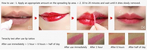 -. Feature : 10 minutes after rubbing and removed, naturally colored lip color, lip tint biting! 24H Magic Lip Tint / Lip tattoo is not sticky! / No harm to human body, food coloring! / Remove dead skin cells / Moisturizing, long - lasting